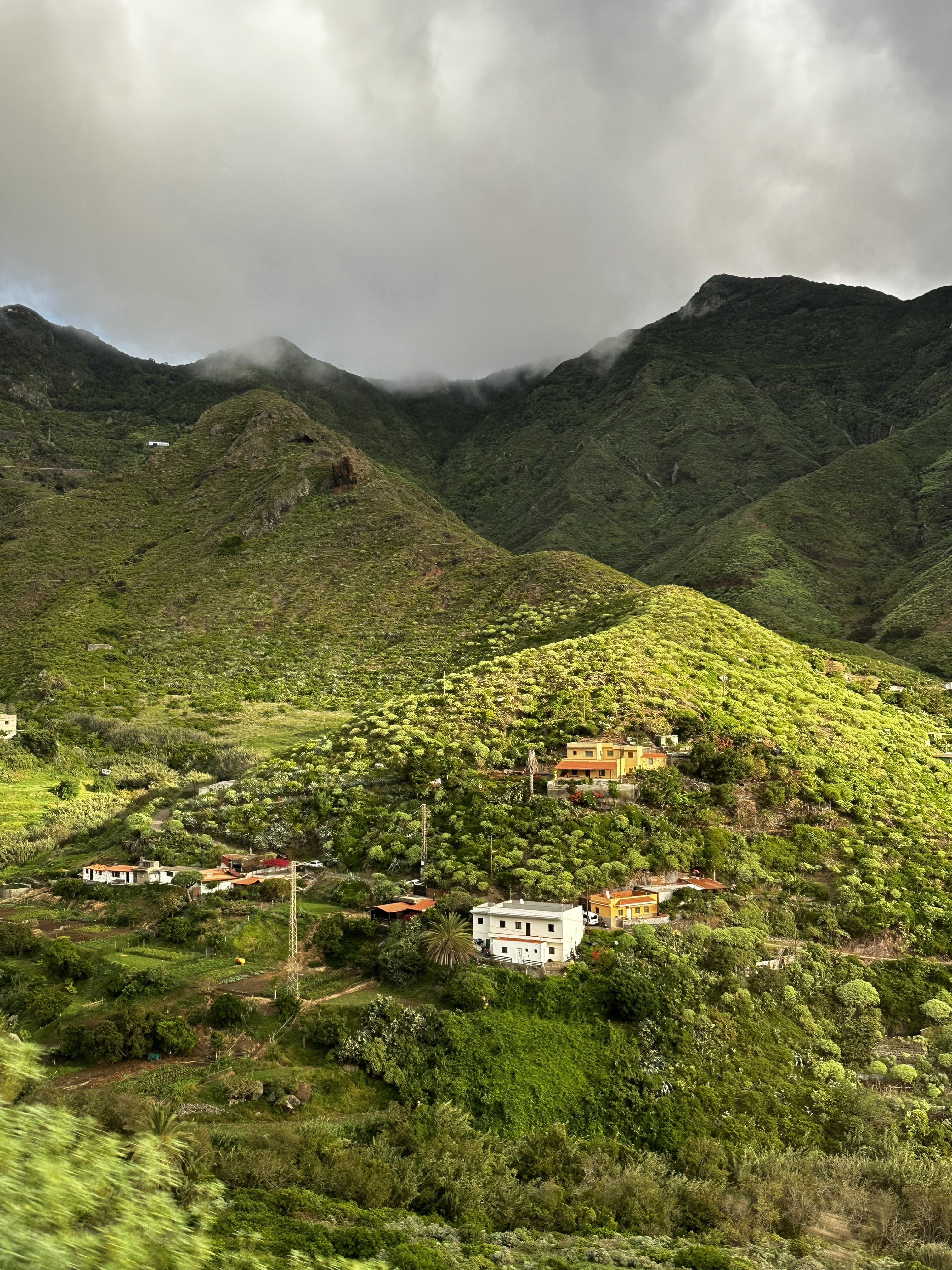 All of the houses on the whole island of Lanzarote are painted white, and those inland have green trim on the windows, doors and stairs while those near the ocean have blue trim. This was another result of Manrique's vision of the island. He was all for keeping everything in harmony with nature, and convinced the citizens that painting their homes white would also keep them cooler by reflecting much of the heat. It seemed to have worked well, as this style has been adopted across the entire island. The temperatures on Lanzarote hover between 22C and 30C pretty much all year, and the island doesn't get very much rain. Here are some of the houses we passed on our drive: